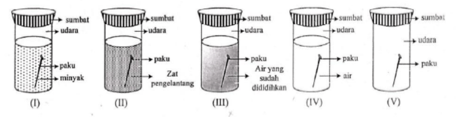 Gambar berikut menunjukkan eksperimen tentang perkaratan (korosi):