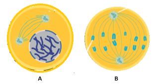 Tahap pembelahan meiosis yang ditunjukkan oleh huruf A dan B secara berurutan kemungkinan adalah ….