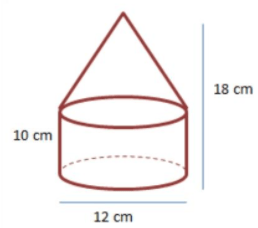 Gambar berikut menunjukkan sebuah benda yang dibentuk dari sebuah tabung dan sebuak kerucut.