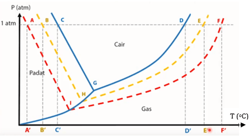 Gambar berikut menyatakan diagram P – T larutan KCl 0,5 M ; larutan 0,5 M ; dan pelarut air.