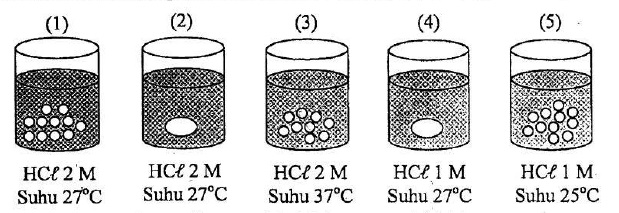Gambar berikut merupakan reaksi antara 2 gram pualam dengan 100 mL larutan HCl.