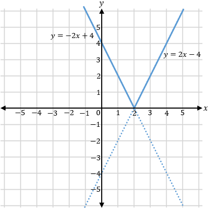 Gambar dari grafik fungsi h(x) = |2x - 4| yaitu ....