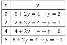 Gambar dari persamaan x + 2y = 4 adalah ....