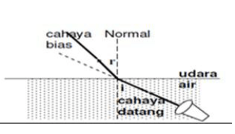 Gambar di atas memperlihatkan seseorang yang melihat ikan dalam akuarium. Bayangan orang yang dilihat oleh ikan itu kira-kira berada di titik ....