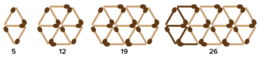 Gambar di atas menunjukkan pola bilangan yang dibuat dari batang-batang korek api.