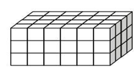 Gambar di bawah adalah mainan anak-anak yang berbentuk balok, tersusun dari kubus-kubus satuan yang kongruen. Jika seluruh permukaan balok tersebut dicat banyaknya kubus satuan yang terkena cat pada dua sisinya saja ada....