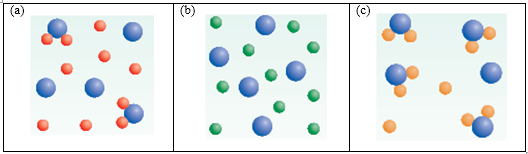 Gambar di bawah ini menunjukkan reaksi senyawa (a) PQ2 (b) PR2 dan (c) dan PS2 di dalam pelarut air.