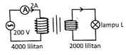 Gambar di bawah melukiskan transformator dengan efisiensi 75% dengan kumparan sekundernya dihubungkan dengan sebuah lampu L.