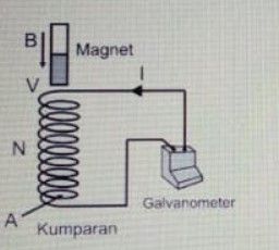 Gambar di bawah menunjukkan rangkaian alat-alat yang digunakan untuk percobaan GGL induksi. Di antara faktor-faktor di bawah ini. 1) Jumlah lilitan. 2) Kekuatan fluks magnet. 3) Kecepatan relative dari magnet. 4) Diameter kawat kumparan. Yang berpengaruh terhadap besarnya GGL induksi yang dihasilkan adalah ....