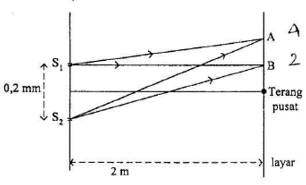 Gambar disamping merupakan sketsa lintasan sinar pada peristiwa interferensi celah ganda.