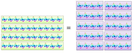 Gambar yang memenuhi dari notasi matematika 10 × 4 = 4 × 10 adalah …