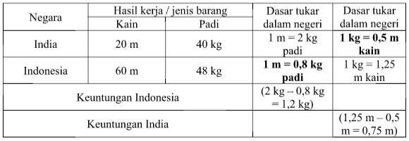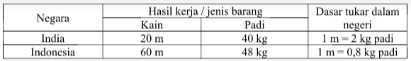 Indonesia 1,2 kg padi dan India 0,75 m kain