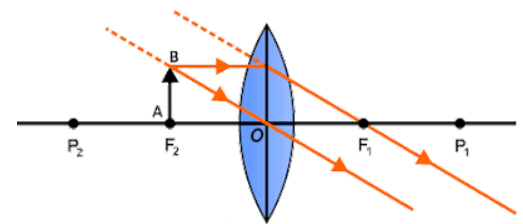 Gambarkan sketsa pembentukan bayangan pada lensa tipis cembung-cembung dan jelaskan sifat-sifat bayangannya jika benda terletak di titik api lensa!