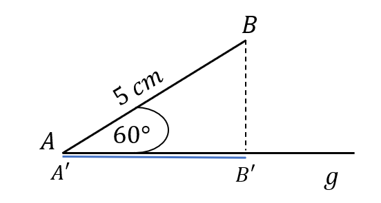 Gambarlah sebuah garis sepanjang 5 cm yang membentuk sudut dengan suatu garis , tentukan proyeksi dan panjang proyeksi pada garis