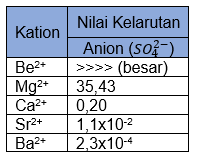 Garam sulfat golongan alkali tanah yang paling sukar larut adalah garam yang mengandung unsur ....