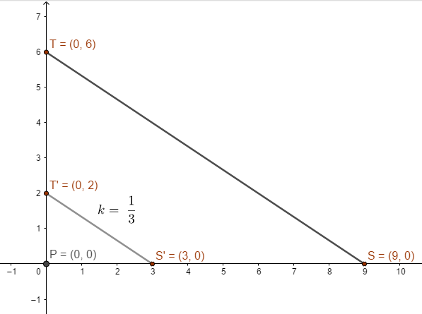 Garis berkoordinat di dan . Tentukan bayangan setelah didilatasi dengan faktor skala dan berpusat di titik asal. Gambarlah garis dan bayangannya.