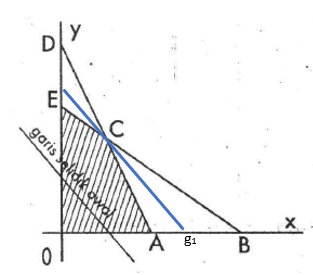Garis selidik awal dari suatu fungsi tujuan pada suatu syarat dapat digambarkan seperti berikut.