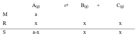 Gas A terdisosiasi pada suhu tertentu menurut reaksi . Jika tekanan total dalam keadaan setimbang nilainya p, dan tekanan parsial gas A pada kesetimbangan nilainya dari tekanan total, maka harga pada temperatur tersebut adalah ....