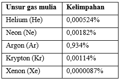 Gas mulia yang paling banyak terdapat di alam adalah ….