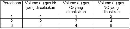 Gas nitrogen direaksikan dengan gas oksigen menghasilkan gas nitrogen monoksida dengan data reaksi: