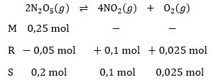 Dalam wadah 1 L dimasukkan 0,25 mol gas , saat kesetimbangan tercapai terdapat 0,1 mol . Tetapan kesetimbangan, , untuk reaksi tersebut adalah ....