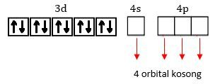 Karena tingkat energi 4s dan 4p itu berbeda, dimana tingkat energi 4s lebih rendah daripada tingkat energi 4p, maka nantinya akan terjadi proses hibridisasi sehingga akan membentuk orbital hibrida