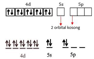 Oleh karena tingkat energi 5s dan 5p berbeda (5s lebih rendah dari 5p), kedua orbital terhibridisasi sehingga membentuk orbital hibrida sp yang memiliki geometri linear.