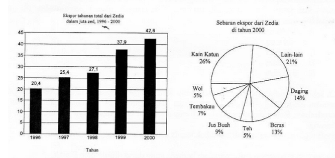 Grafik di bawah ini memberikan informasi tentang ekspor dari Zedia, sebuah negara yang menggunakan satuan mata uang zed