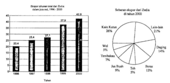 Grafik di bawah ini memberikan informasi tentang ekspor dari Zedia, sebuah negara yang menggunakan satuan mata uang zed.