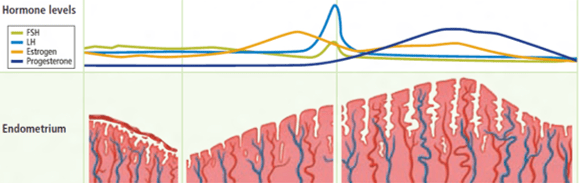 Grafik di bawah ini menggambarkan pengaruh hormon terhadap ketebalan dinding rahim.