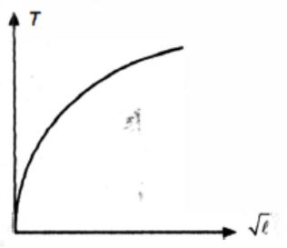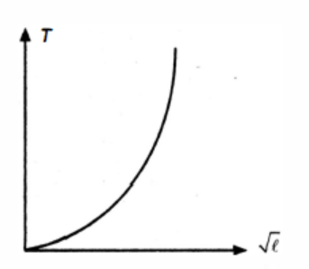 Grafik di bawah ini yang tepat menunjukkan hubungan periode (T) dengan panjang tali () pada pendulum yang bergetar harmonis sederhana adalah ....