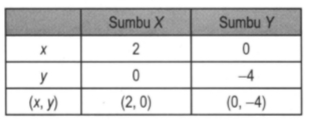 Grafik garis dengan persamaan y = 2x - 4 adalah ....