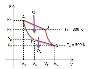 Grafik P –V dari sebuah siklus Carnot terlihat seperti gambar berikut: