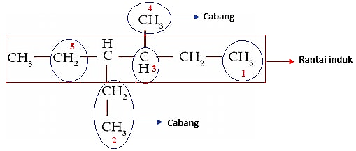 Gugus cabang pada senyawa karbon berikut ini ditunjukkan oleh nomor ....