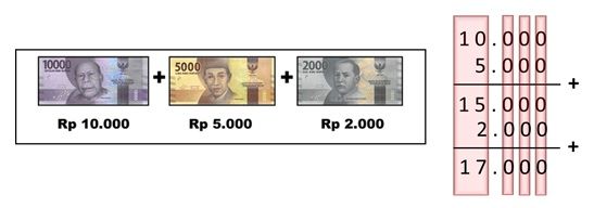 Hasil penjumlahan beberapa gambar mata uang ribuan berikut ini adalah....