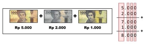 Hasil penjumlahan beberapa gambar mata uang ribuan berikut ini adalah...