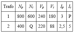 Hasil percobaan yang dilakukan siswa dengan menggunakan dua transformator yang mempunyai efisiensi 80% adalah sebagai berikut.