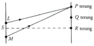 Hasil percobaan Young dengan sinar monokromatis dilukiskan seperti terlihat pada gambar. Garis terang pada P terjadi jika PM - PL sama dengan