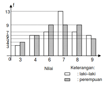 Hasil ujian matematika siswa laki–laki dan perempuan disajikan pada diagram berikut: