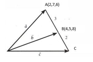 Helikopter terbang membentuk garis lurus. Diperlukan waktu 3 menit untuk terbang dari titik A ke titik B dan 5 menit untuk terbang dari titik A ke titik C. Jika koordinat A(2, 7, 6), B( 4, 5, 8), dan titik B ada di antara A dan C, maka koordinat titik C adalah ....