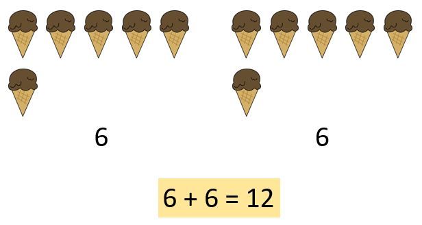 Hikma mempunyai 6 es krim. Kemudia, Hikma membeli lagi 6 es krim. Maka, jumlah es krim Hikma sekarang adalah....
