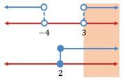 dan x ≥ 2 dihubungkan oleh kata hubung dan. Sehingga penyelesaian dari kondisi ini merupakan irisan dari penyelesaian kedua pertidaksamaan tersebut.