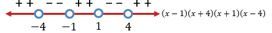 Didapat pembuat nol yaitu x = 1 , x = -4 , x = -1 , x = 4 .