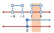 Karena tanda pertidaksamaannya adalah < , maka pilih daerah yang bernilai negatif, yaitu -4 < x < -1 atau 1 < x < 4 .