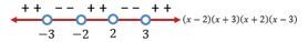Didapat pembuat nol yaitu x = 2, x = -3, x = -2, x = 3.