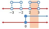 Karena g(x) ≥ 0 harus terpenuhi, maka penyelesaiannya adalah irisan dari penyelesaian yang didapatkan sebelumnya dan syarat g(x) ≥ 0 . Perhatikan garis bilangan berikut :