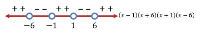 Dengan melakukan uji titik pada garis bilangan, kita dapatkan garis bilangan seperti berikut.