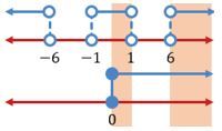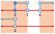 Jika diambil gabungan dari kedua penyelesaian yang didapat, maka diperoleh garis bilangan berikut.