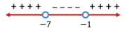 Karena tanda pertidaksamaan yang digunakan adalah <, maka pilih daerah yang bernilai negatif, yaitu -7 < x < -1.