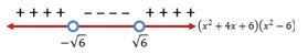 ∣ ∣ x 2 + 2 x ∣ ∣ ( x 2 + 2 x ) 2 ( x 2 + 2 x ) 2 − ( 2 x + 6 ) 2 ( ( x 2 + 2 x ) + ( 2 x + 6 ) ) ( ( x 2 + 2 x ) − ( 2 x + 6 ) ) ( x 2 + 2 x + 2 x + 6 ) ( x 2 + 2 x − 2 x − 6 ) ( x 2 + 4 x + 6 ) ( x 2 − 6 ) < < < < < < 2 x + 6 ( 2 x + 6 ) 2 0 0 0 0